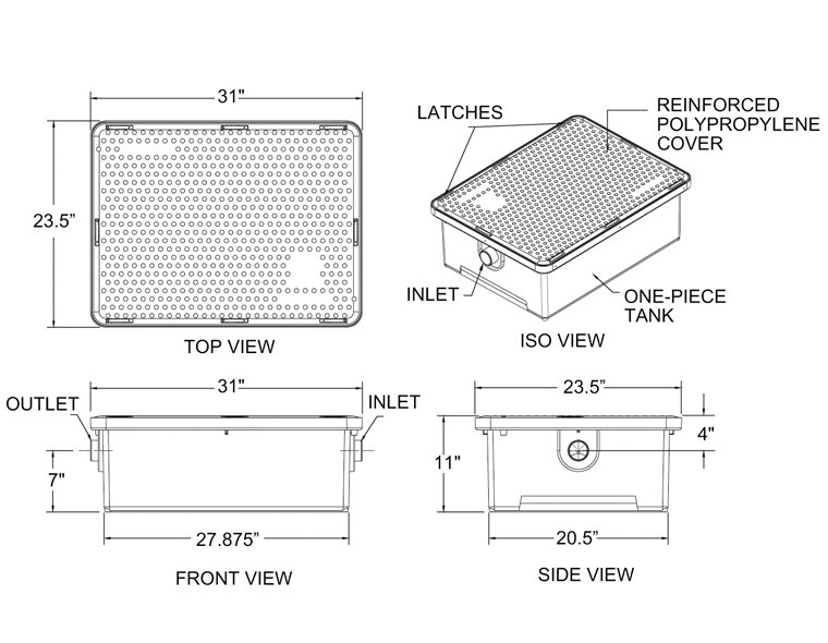 The Endura® Lo-PRO is ideal for those tight on-floor grease interceptor applications where space is at a premium. Based on the same dimensional footprint as our successful 35gpm and 50gpm Endura models, the 25gpm has an overall height of just 11 inches, and still meets the requirements of ASME112.14.3.
